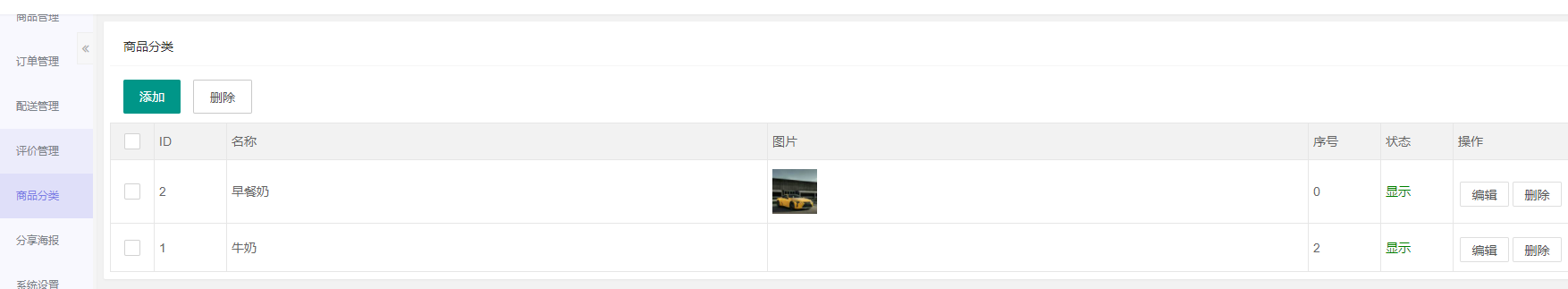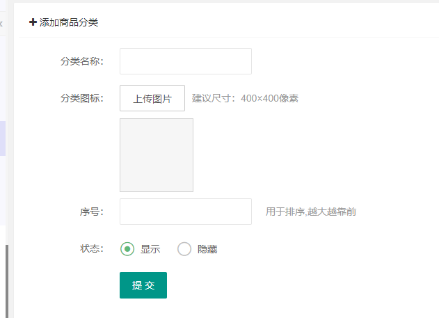 商品分类:用于查看,添加,删除,编辑商品分类
